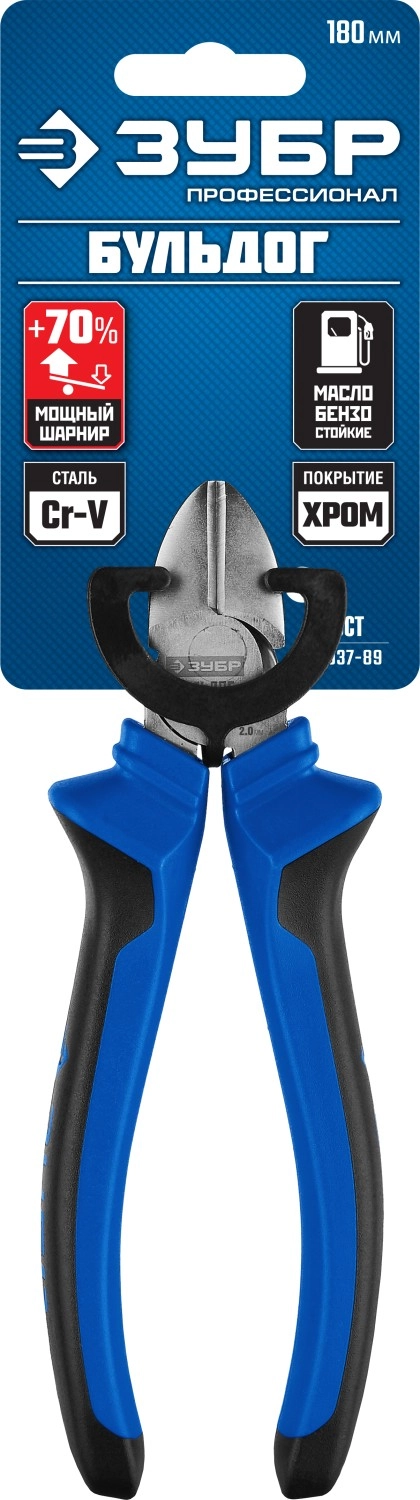 ПроизводителиКусачки боковые (бокорезы) 180мм, эксцентриковое расположение шарнира "БУЛЬДОГ" (2201-5-18_z02) ЗУБР