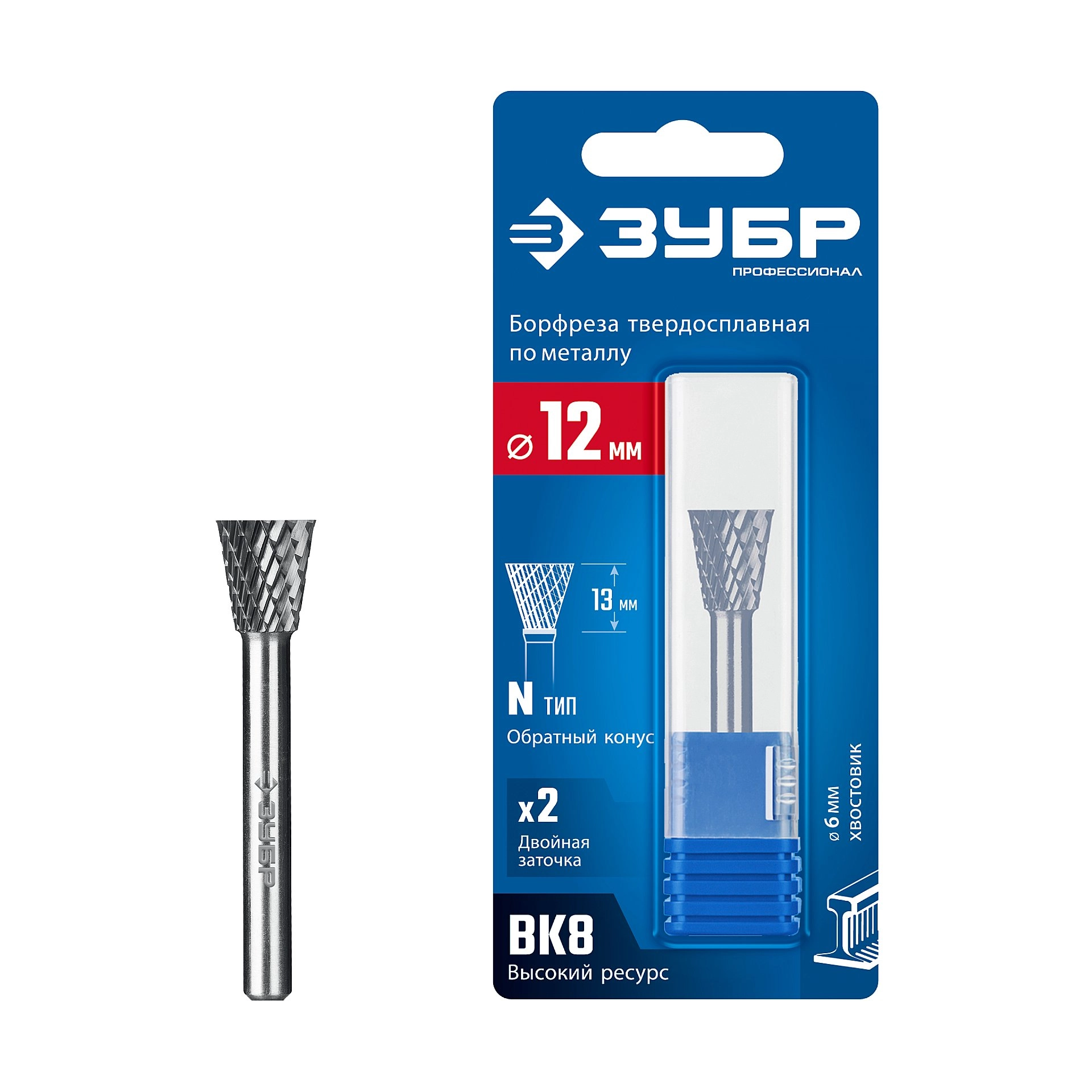 ПроизводителиБорфреза обратноконич., 12х13х58 мм, тип N (угол 30°), хв-к 6 мм "ПРОФЕССИОНАЛ" (28812-12-13) ЗУБР