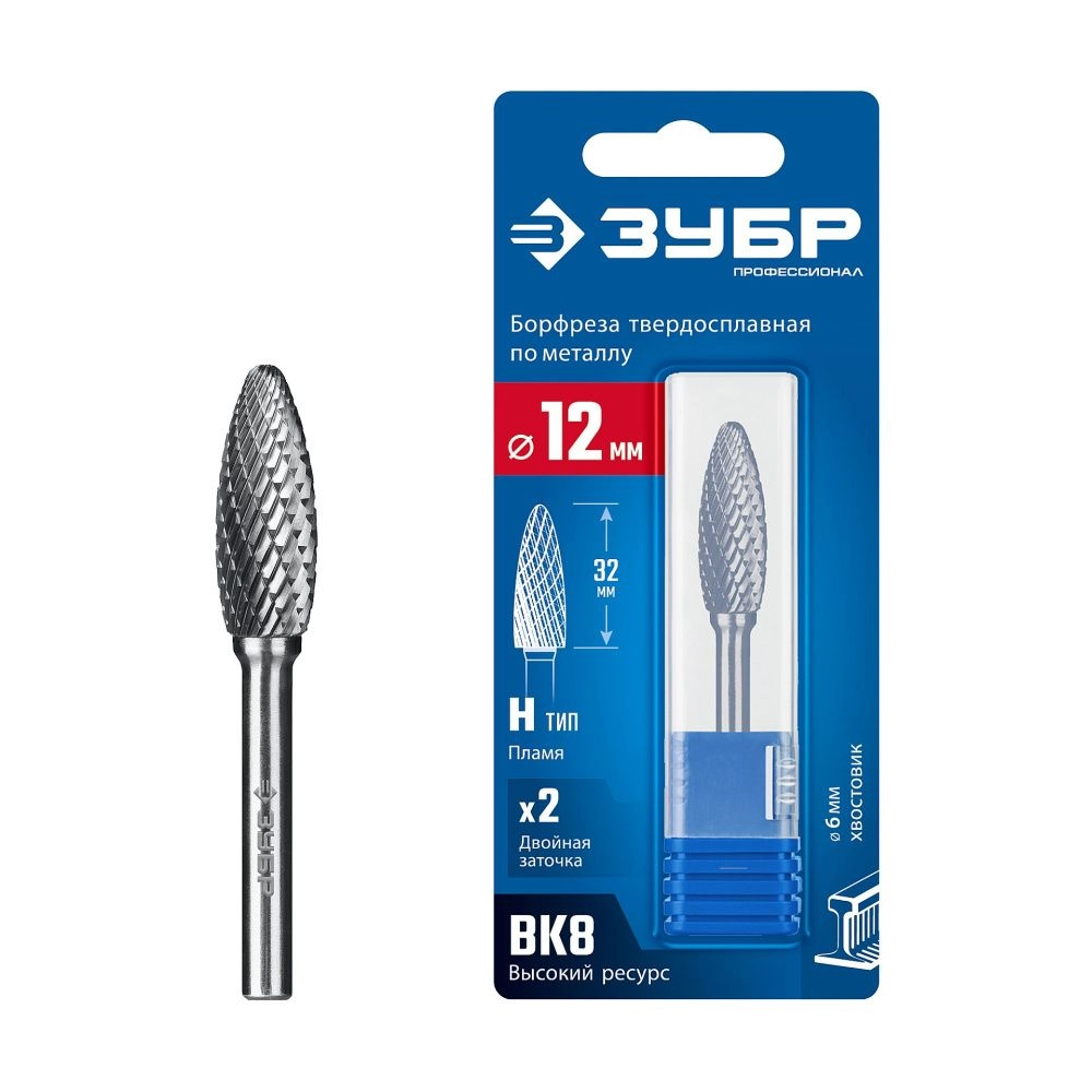 ПроизводителиБорфреза пламя 12х32х77 мм, тип H, радиус 2.5 мм, хв-к 6 мм "ПРОФЕССИОНАЛ" (28807-12-32) ЗУБР