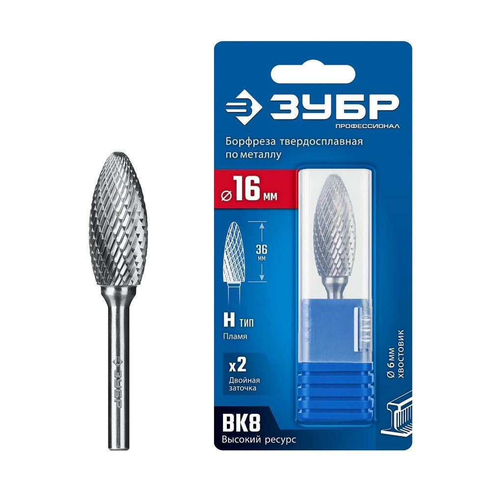ПроизводителиБорфреза пламя 16х36х81 мм, тип H, радиус 2.5 мм, хв-к 6 мм "ПРОФЕССИОНАЛ" (28807-16-36) ЗУБР