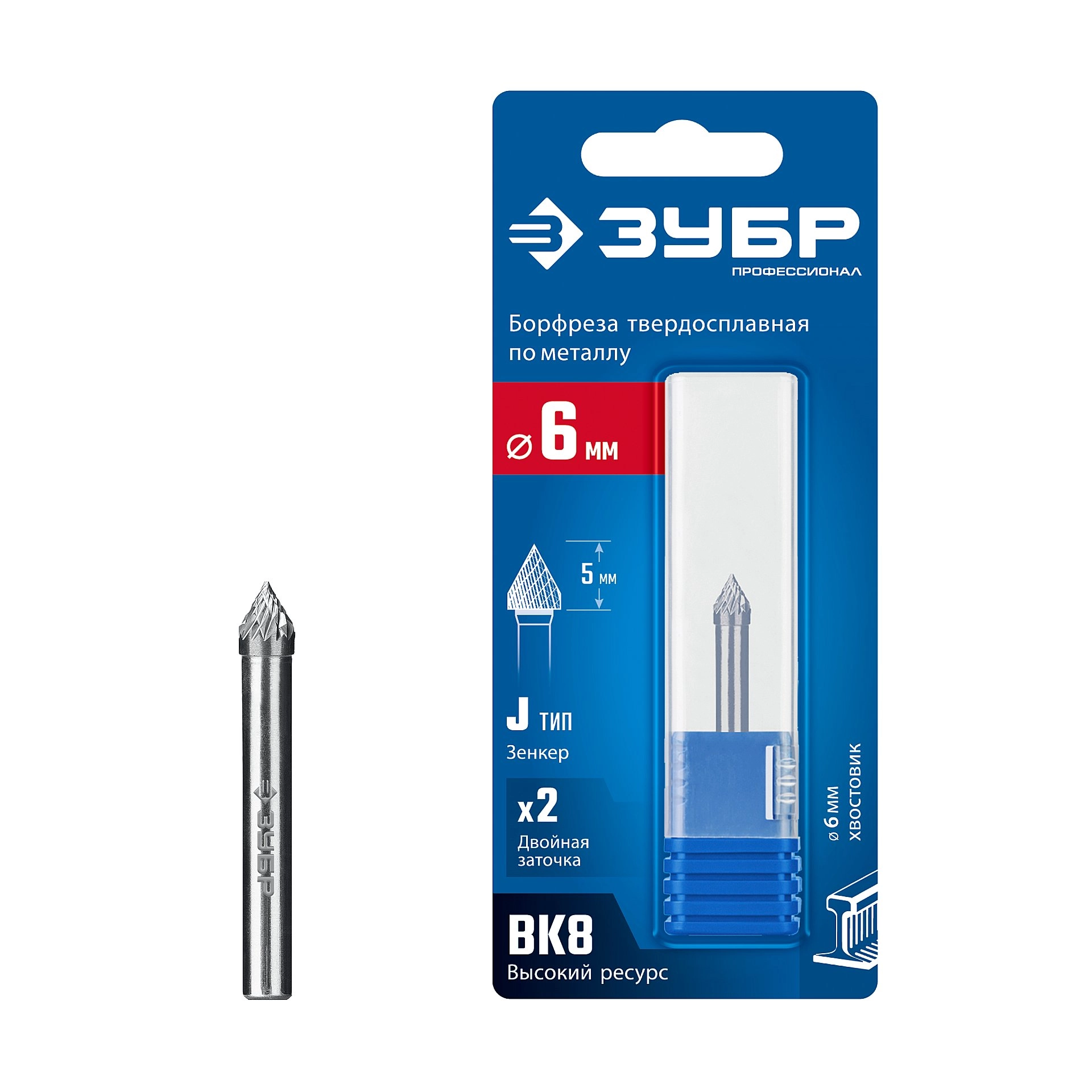 ПроизводителиБорфреза зенкерная 6х5х50 мм, тип J, с вершиной 60°, хв-к 6 мм "ПРОФЕССИОНАЛ" (28808-6-5) ЗУБР