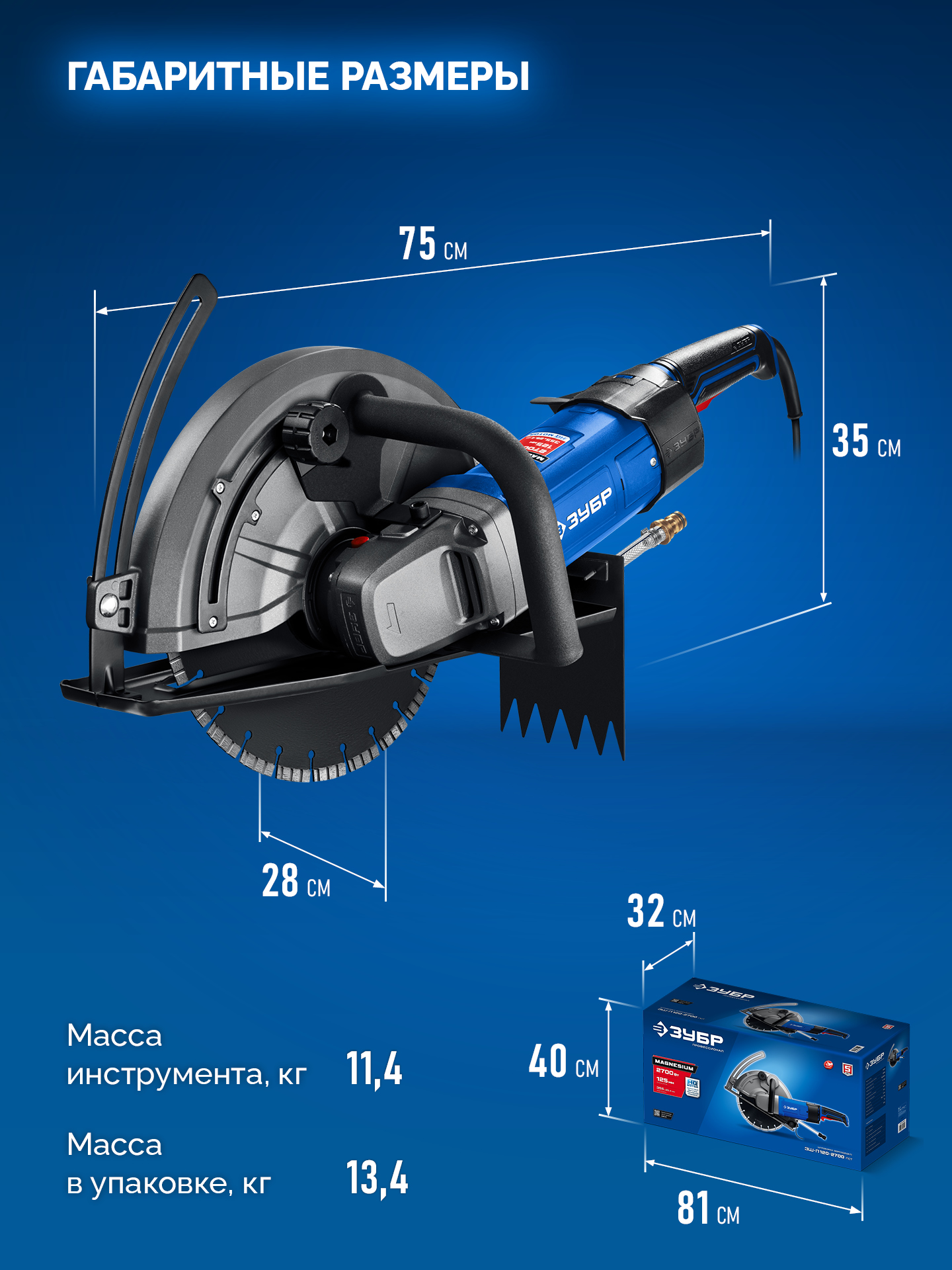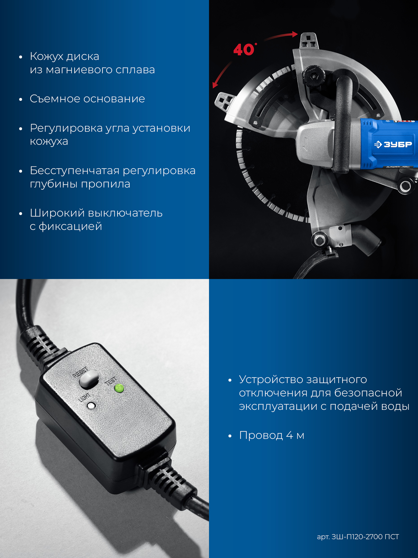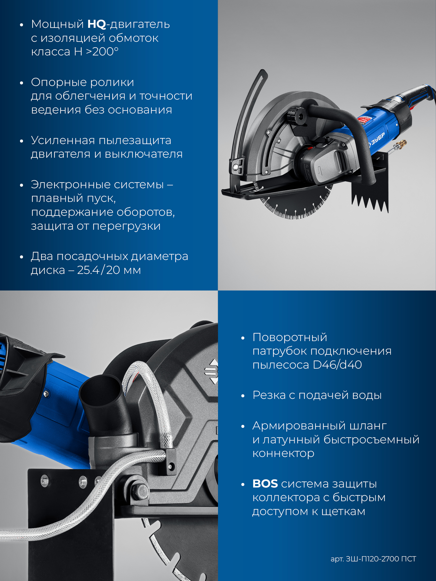 ПроизводителиБороздодел (штроборез) ЗШ-П120-2700 ПСТ (2700 Вт, макс. глуб. 125 мм, диск 355x25.4/20мм, кор.) ЗУБР