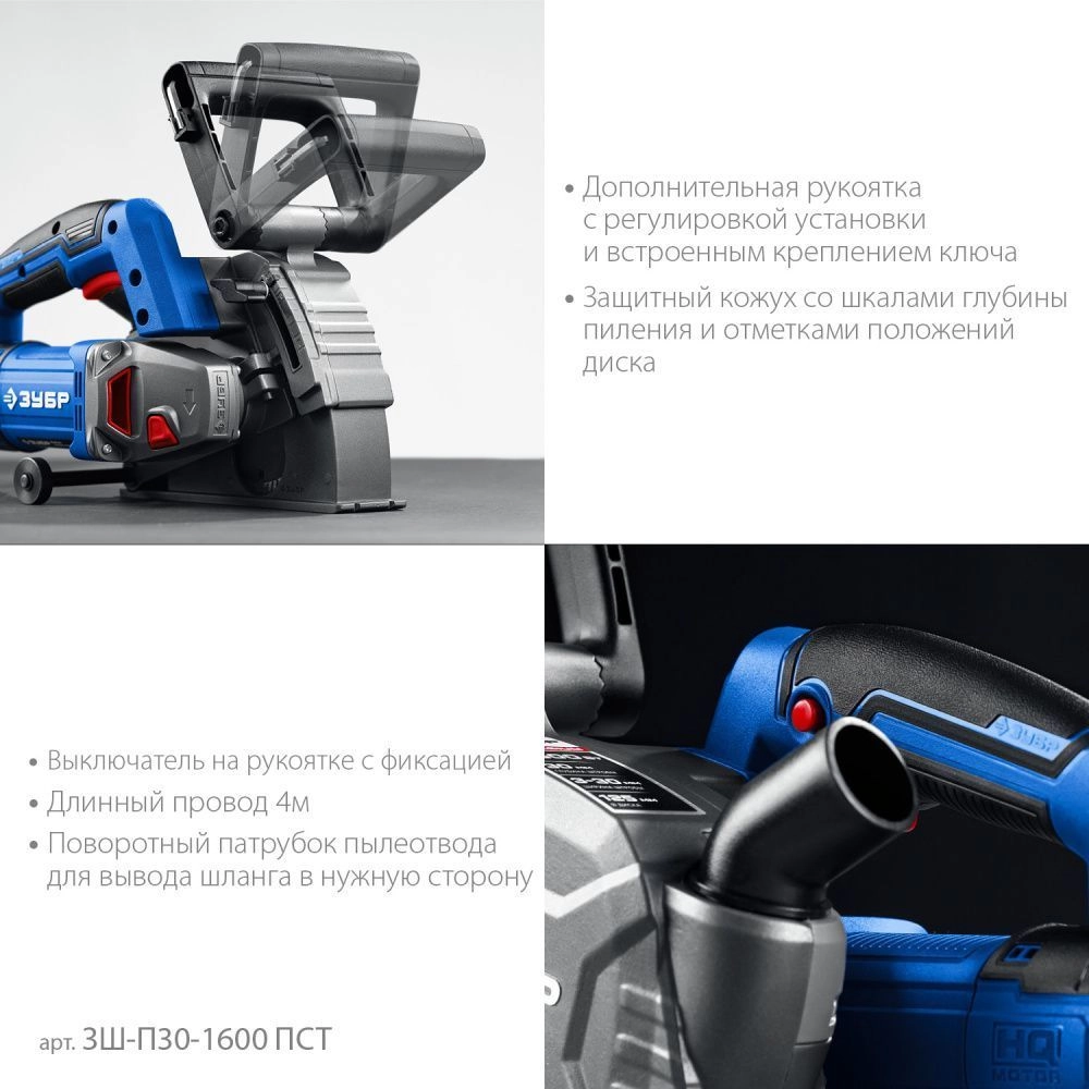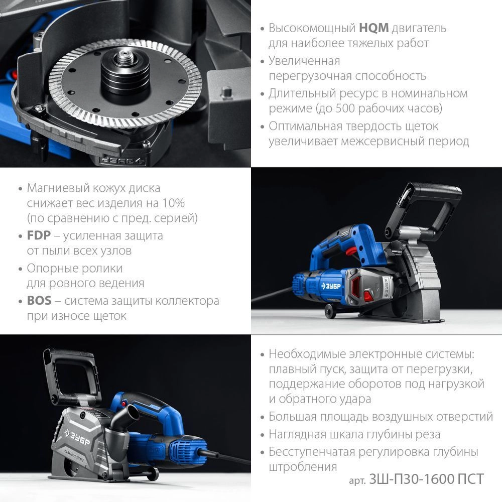 Штроборез ЗУБР ЗШ-П30-1600 ПСТ, предназначен для штробления и резки канавок в бетонных и кирпичных поверхностях.