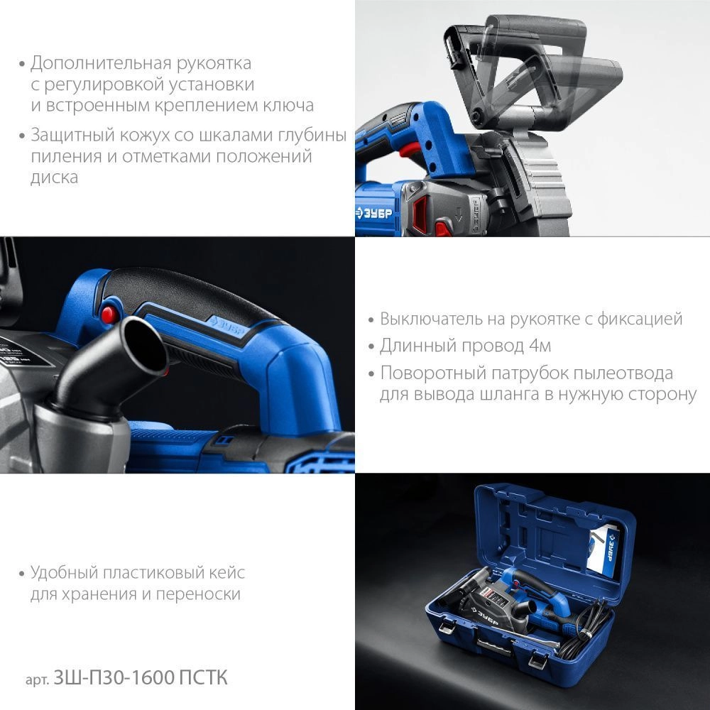 Штроборез ЗУБР ЗШ-П30-1600 ПСТК, предназначен для штробления и резки канавок в бетонных и кирпичных поверхностях.