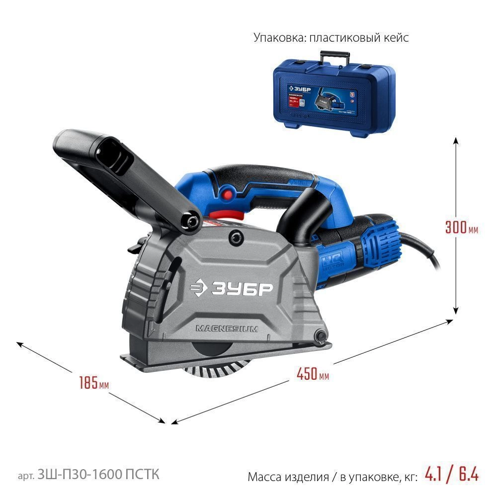 Профессиональный штроборез ЗУБР для выполнения штроб глубиной до 30 мм в легких бетонах. Расширенная (по сравнению с ЗШ-П30-1600 ПСТ) комплектация включает удобный кейс для хранения и переноски. Легкость и компактность позволяют длительно держать его на весу при работе на вертикальных поверхностяхПрименение