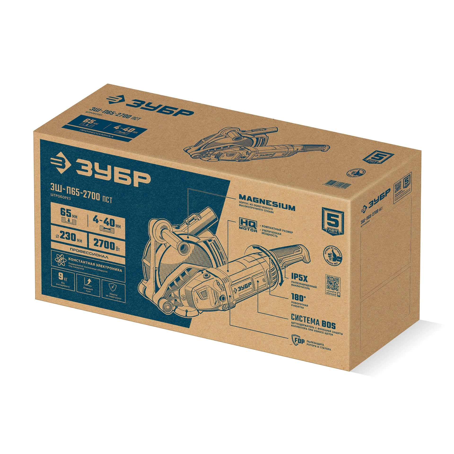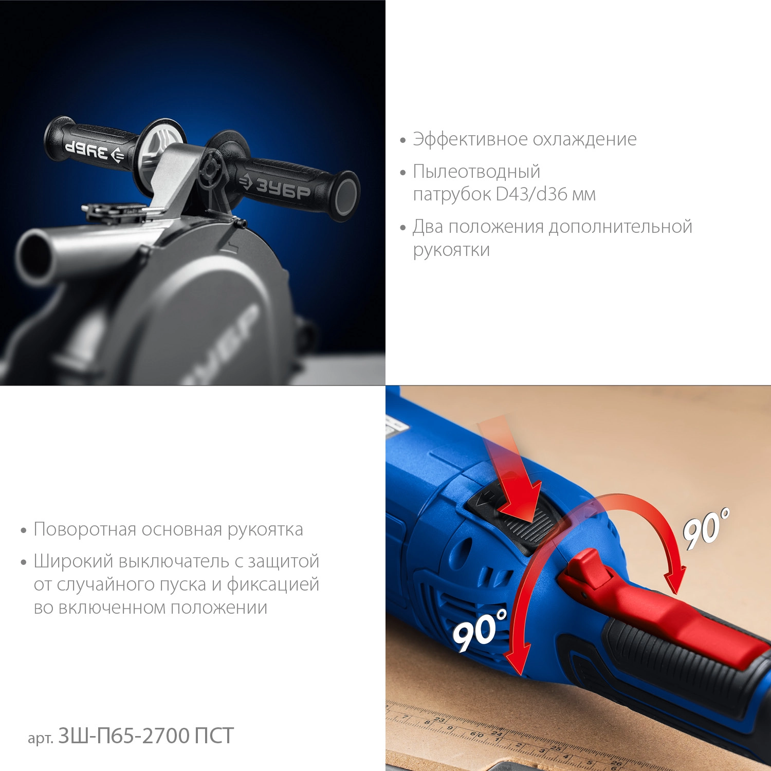 Штроборез ЗУБР ЗШ-П65-2700 ПСТК, предназначен для выполнения штроб в легких и средних бетонах.