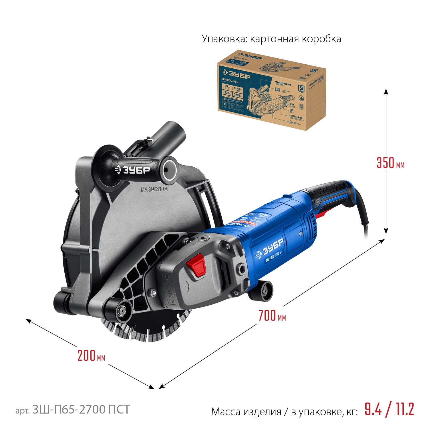 Штроборез ЗУБР ЗШ-П65-2700 ПСТК, предназначен для выполнения штроб в легких и средних бетонах.