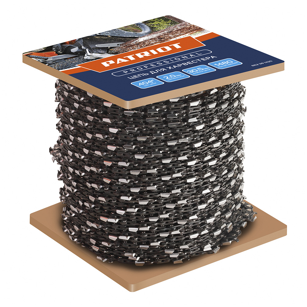 ПроизводителиБухта цепи для харвестера 404 2,0мм 1480 звеньев (чизель) PATRIOT