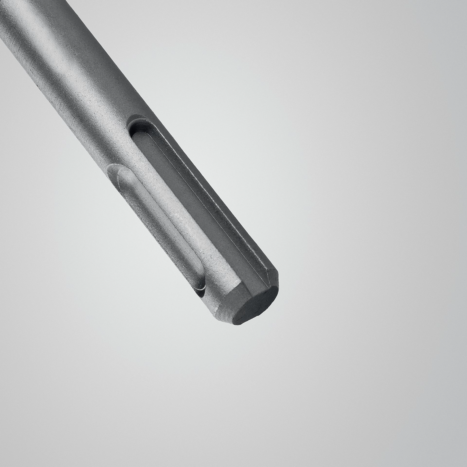 Наконечник бура в форме зубила обеспечивает быстрое вхождение в материал и быстро отводит шлам в спираль.