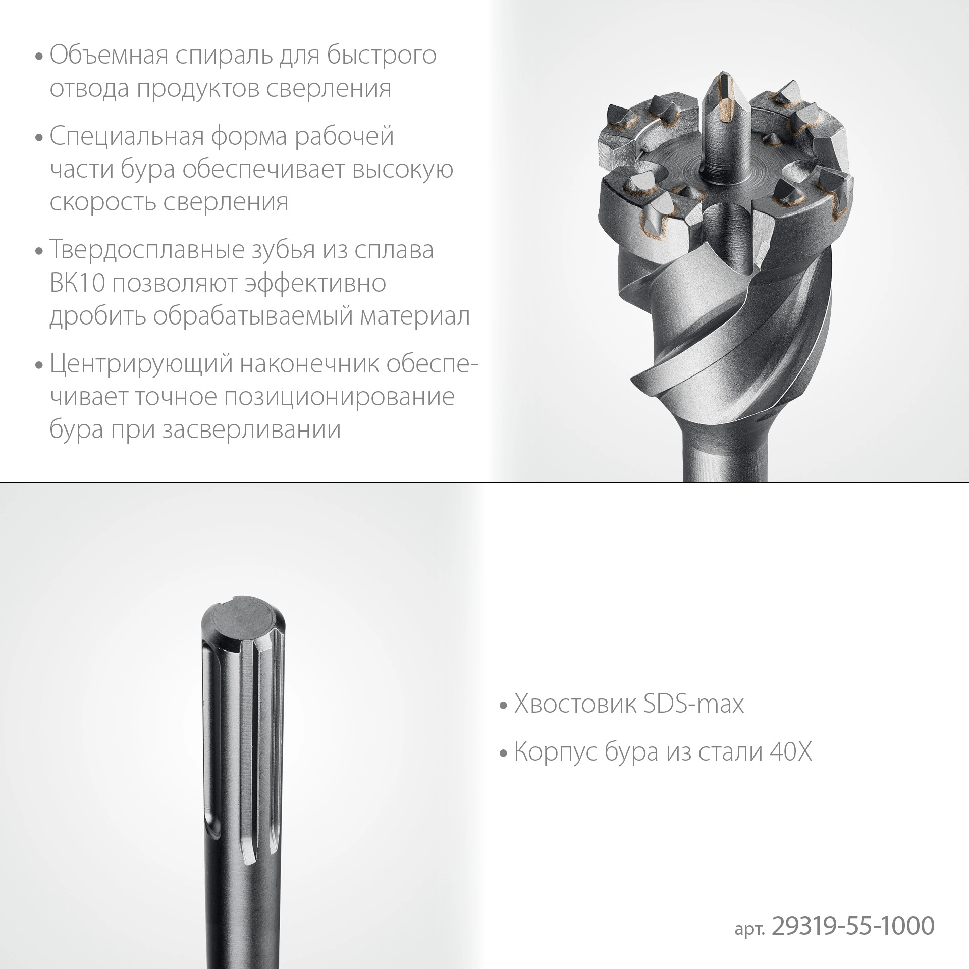 ПроизводителиБур проломный SDS-max 55х900х1000 мм "HERCULES-4Х" (29319-55-1000) STAYER
