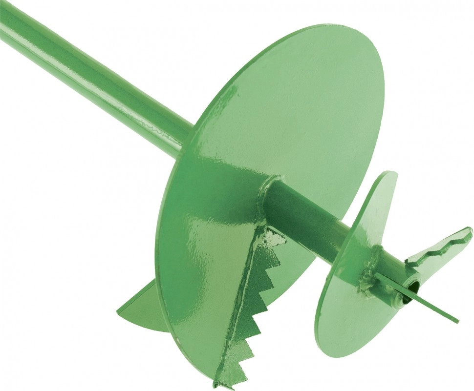 Инструмент успешно справляется с этими задачами благодаря шнековой конструкции, облегчающей процесс бурения - нет необходимости вынимать бур из ямки для отбрасывания грунта.