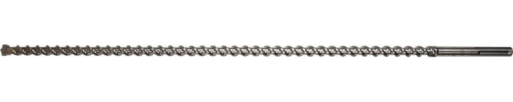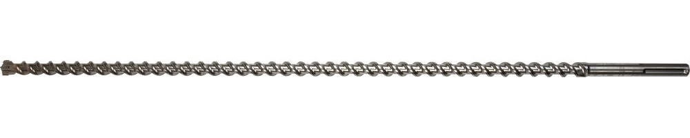 Головная рабочая часть в форме четырехгранного зубила быстро проникает в обрабатываемый материал и помогает избежать подклинивания бура при попадании в арматуру.