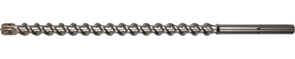 Головная рабочая часть в форме четырехгранного зубила быстро проникает в обрабатываемый материал и помогает избежать подклинивания бура при попадании в арматуру.