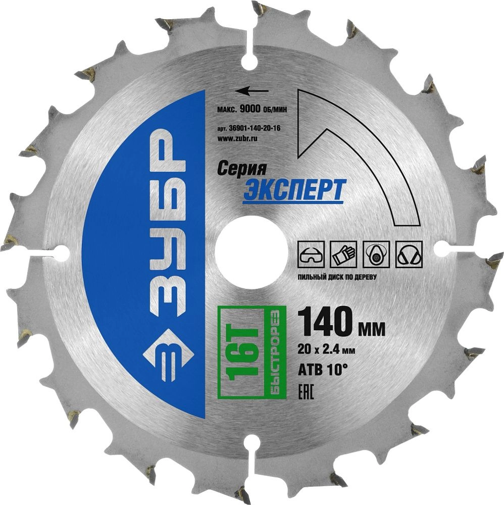 ПроизводителиДиск пильный 140х20х16 по дереву "Быстрорез" (36901-140-20-16) ЗУБР