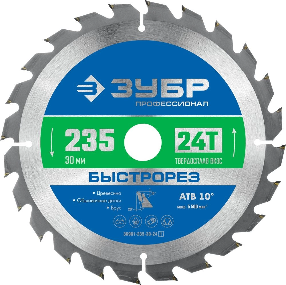 ПроизводителиДиск пильный 235х30х24T по дереву "Быстрорез" (36901-235-30-24_z01) ЗУБР