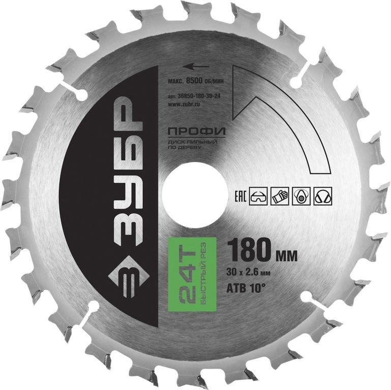 ПроизводителиДиск пильный 180х30х24 по дереву "Быстрый рез" (36850-180-30-24) ЗУБР
