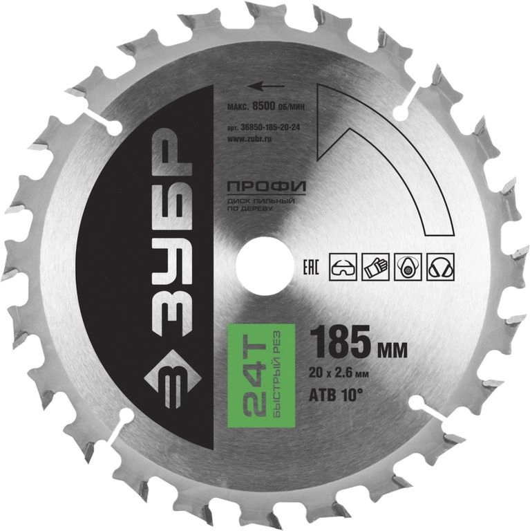 ПроизводителиДиск пильный 185х20х24 по дереву "Быстрый рез" (36850-185-20-24) ЗУБР