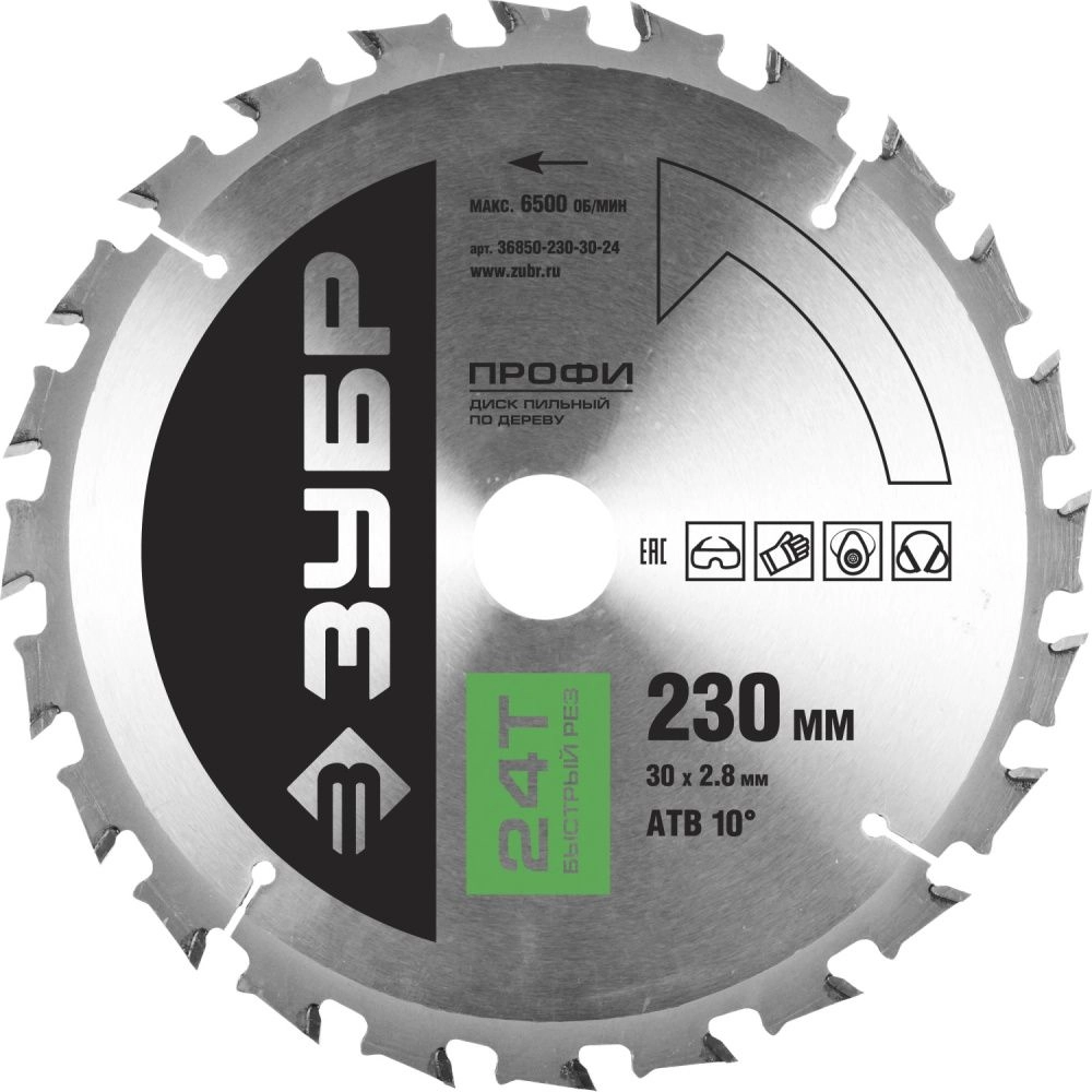ПроизводителиДиск пильный 230х30х24 по дереву "Быстрый рез" (36850-230-30-24) ЗУБР