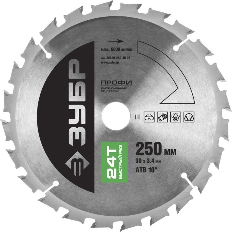 ПроизводителиДиск пильный 250х30х24 по дереву "Быстрый рез" (36850-250-30-24) ЗУБР