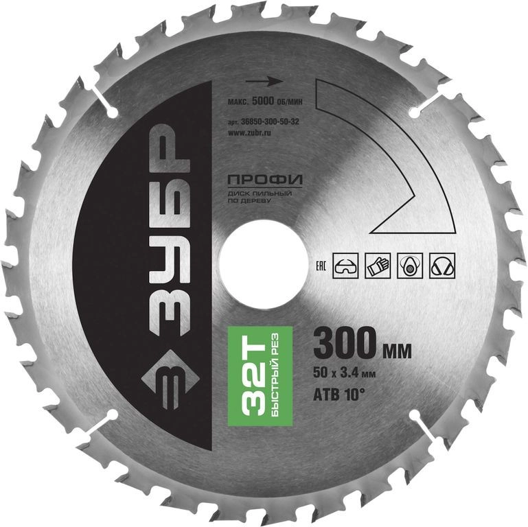 ПроизводителиДиск пильный 300х50х32 по дереву "Быстрый рез" (36850-300-50-32) ЗУБР