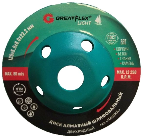 ПроизводителиЧашка алмазная сегм. 2-х рядная (125х8.0х5х22.23) Бетон (F_55-780) GREATFLEX