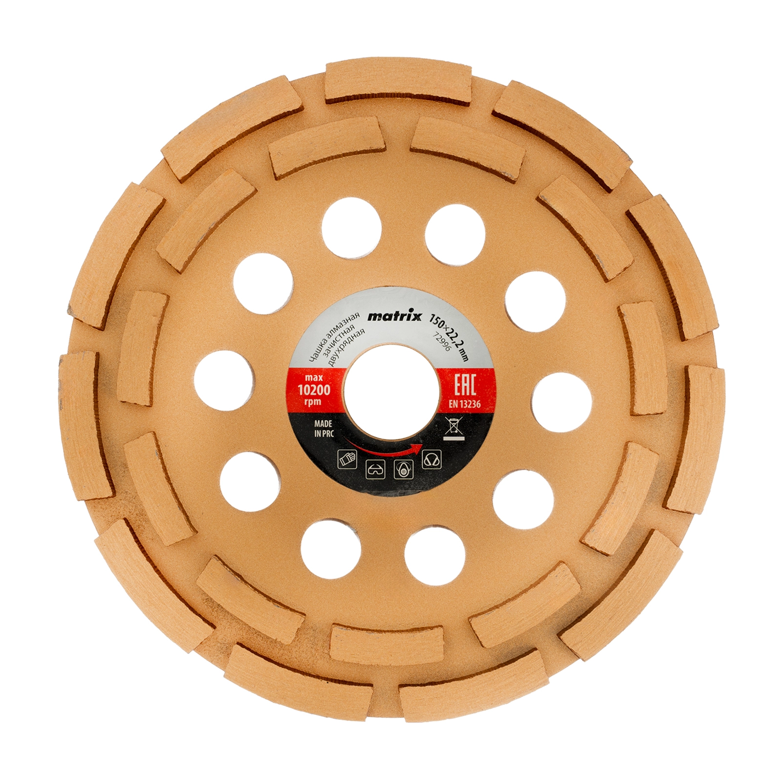 ПроизводителиЧашка алмазная сегм. 2-х рядная (150х7х22.23) Бетон (72996) MATRIX