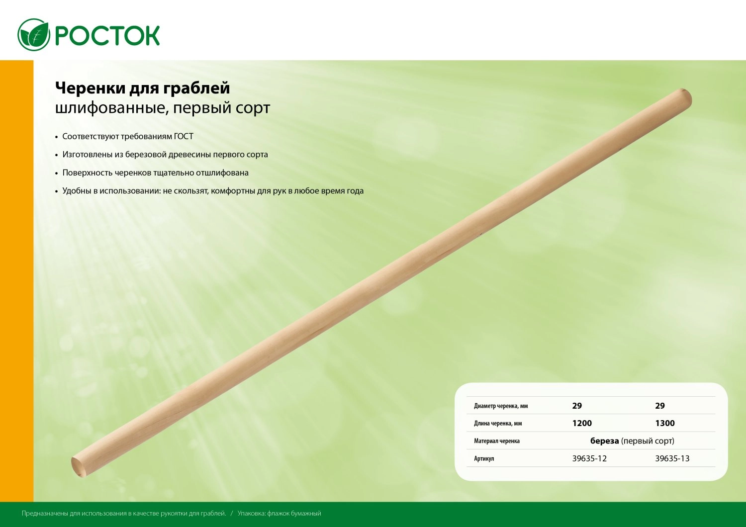 ПроизводителиЧеренок для грабель, 1-й сорт, шлифованный, 1300х29 мм (39635-13) РОСТОК