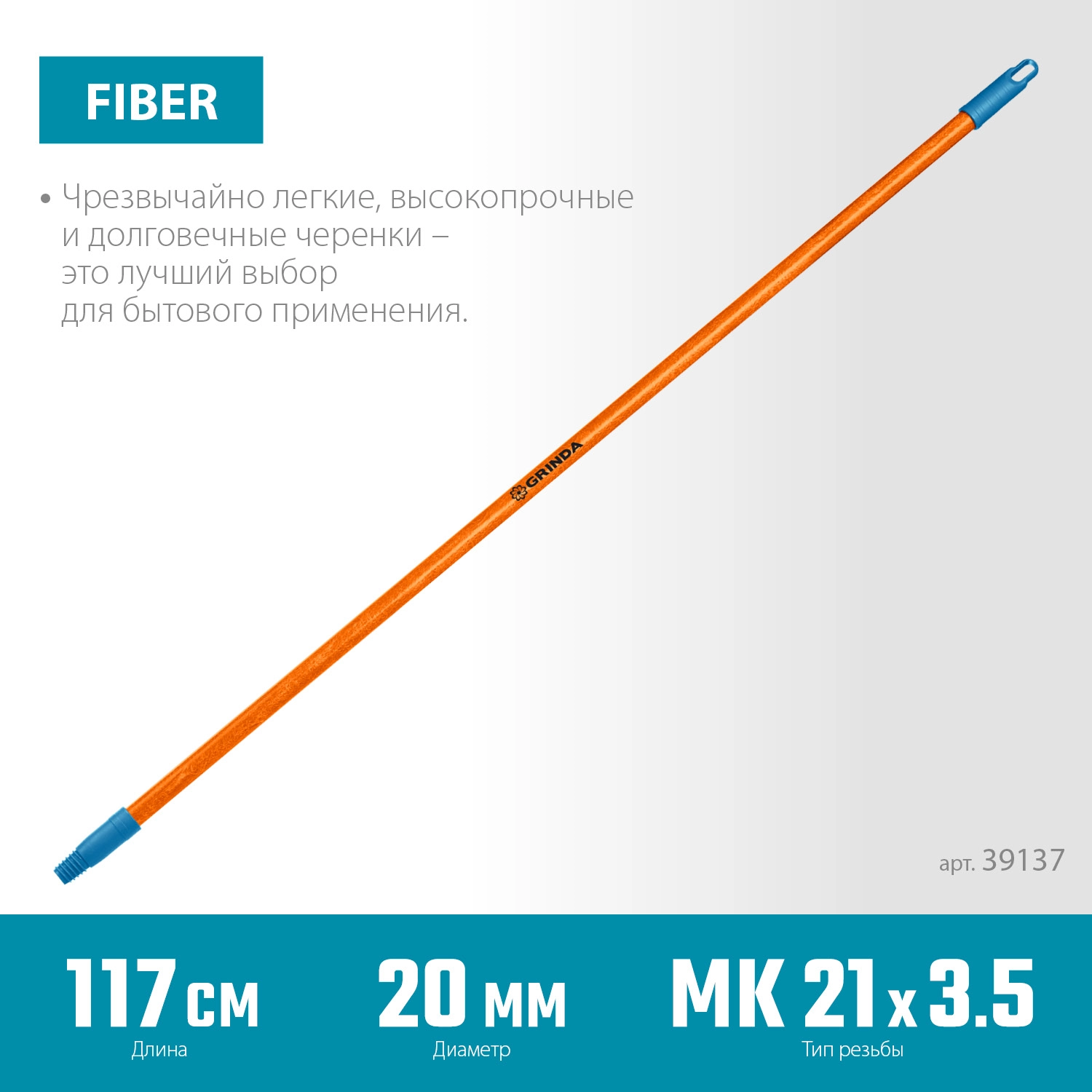 ПроизводителиЧеренок для щеток, длина 1170 мм, фибергласовый, коническая резьба МК 21х3.5мм (39137) GRINDA