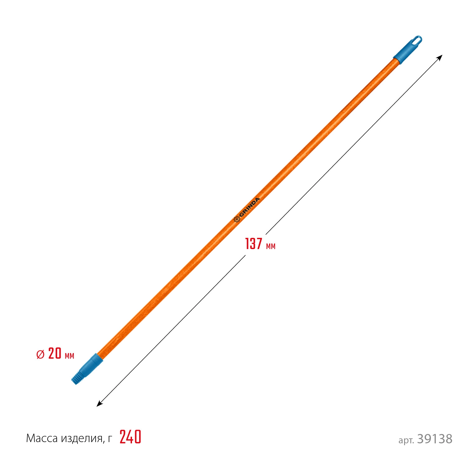 ПроизводителиЧеренок для щеток, длина 1370 мм, фибергласовый, коническая резьба МК 21х3.5мм (39138) GRINDA