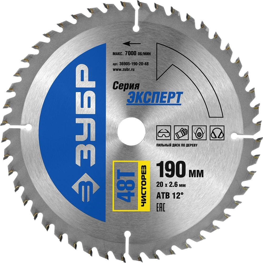 ПроизводителиДиск пильный 190х20х48 по дереву "Чисторез" (36905-190-20-48) ЗУБР