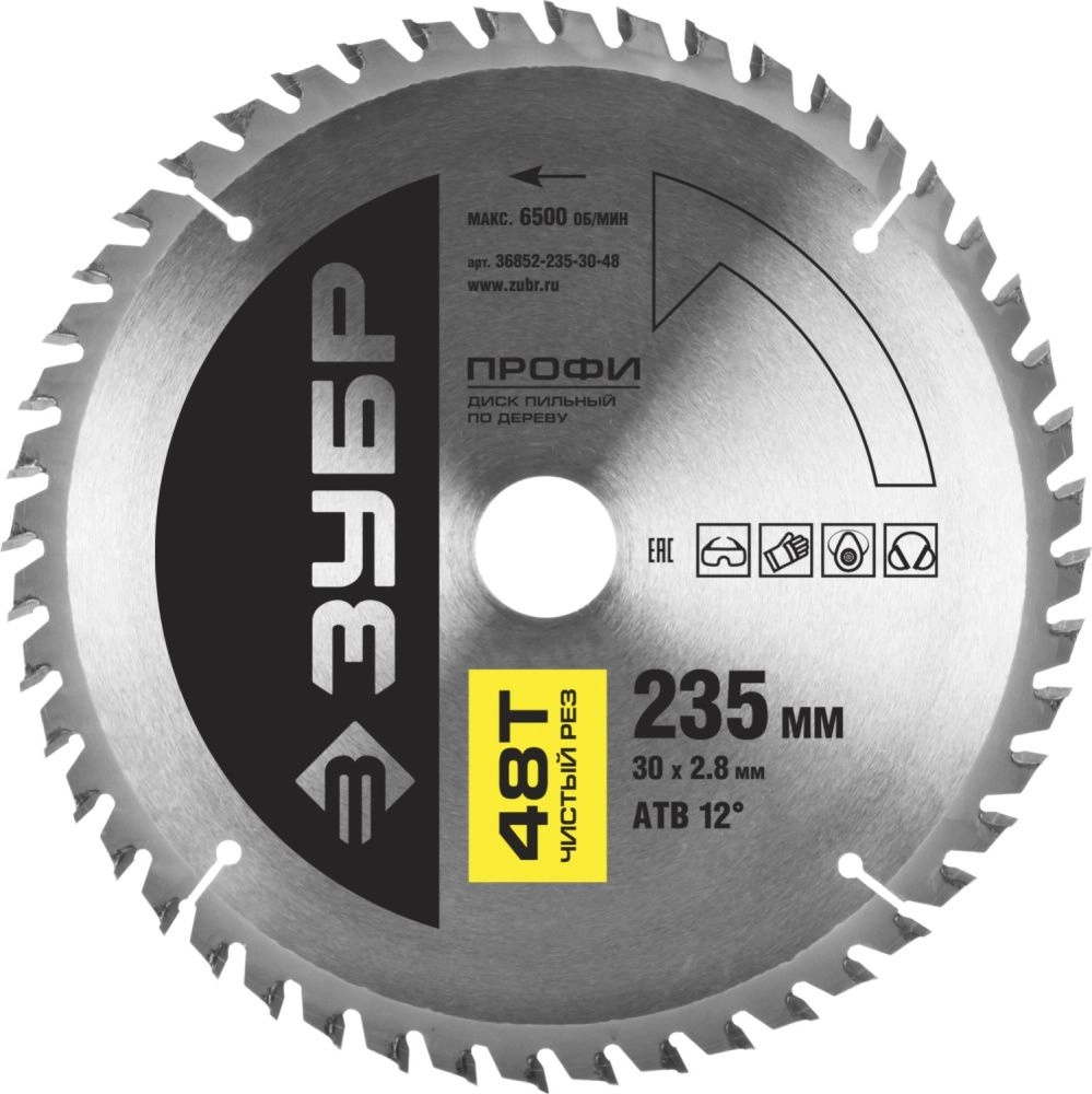 ПроизводителиДиск пильный 235х30х48 по дереву "Чистый рез" (36852-235-30-48) ЗУБР