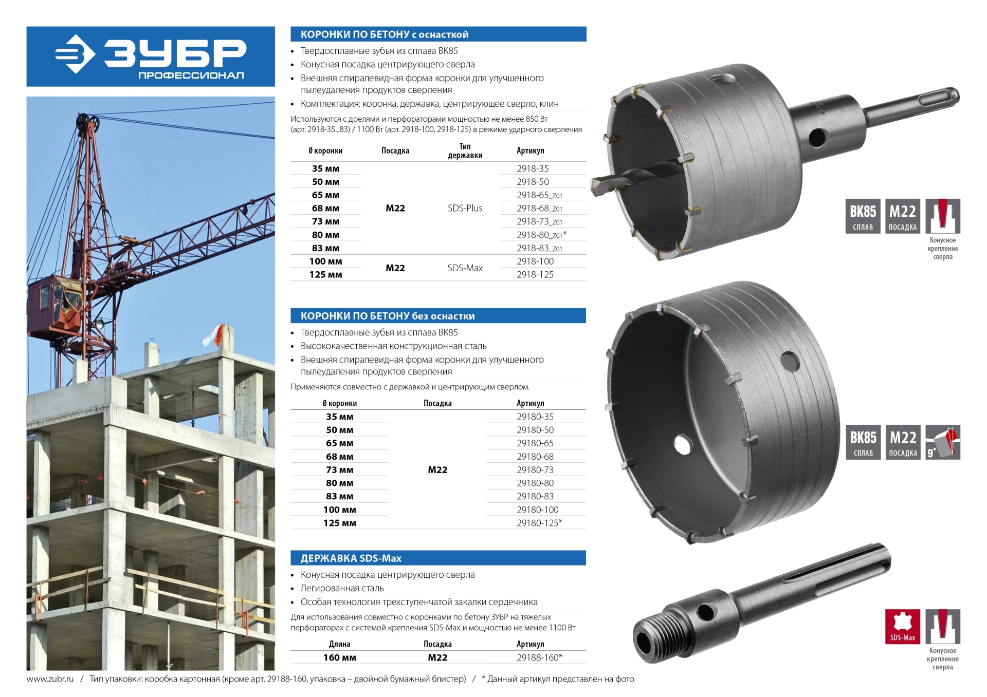 Похожие товарыКод товара: 0020991При прокладке коммуникаций в строящемся здании не обойтись без коронок по бетону. Они позволяют без труда получать отверстия среднего или большого диаметра в самых прочных материалах.25.86 руб. за штКод товара: 0020992При прокладке коммуникаций в строящемся здании не обойтись без коронок по бетону. Они позволяют без труда получать отверстия среднего или большого диаметра в самых прочных материалах.31.51 руб. за штКод товара: 0020993При прокладке коммуникаций в строящемся здании не обойтись без коронок по бетону. Они позволяют без труда получать отверстия среднего или большого диаметра в самых прочных материалах.38.87 руб. за штКод товара: 0021106При прокладке коммуникаций в строящемся здании не обойтись без профессиональных коронок по бетону ЗУБР серии "ЭКСПЕРТ". Они позволяют без труда получать отверстия среднего или большого диаметра в самых прочных материалах. Коронки имеют специальную конструкцию крепления коронки и сверла на конус, большее кол-во твердосплавных зубьев специальной формы и увеличенную длину, что делает их незаменимым инструментом в быту и строительстве.134.23 руб. Скидка 9% 122.15 руб. за шт - Оснастка к электроинструментам