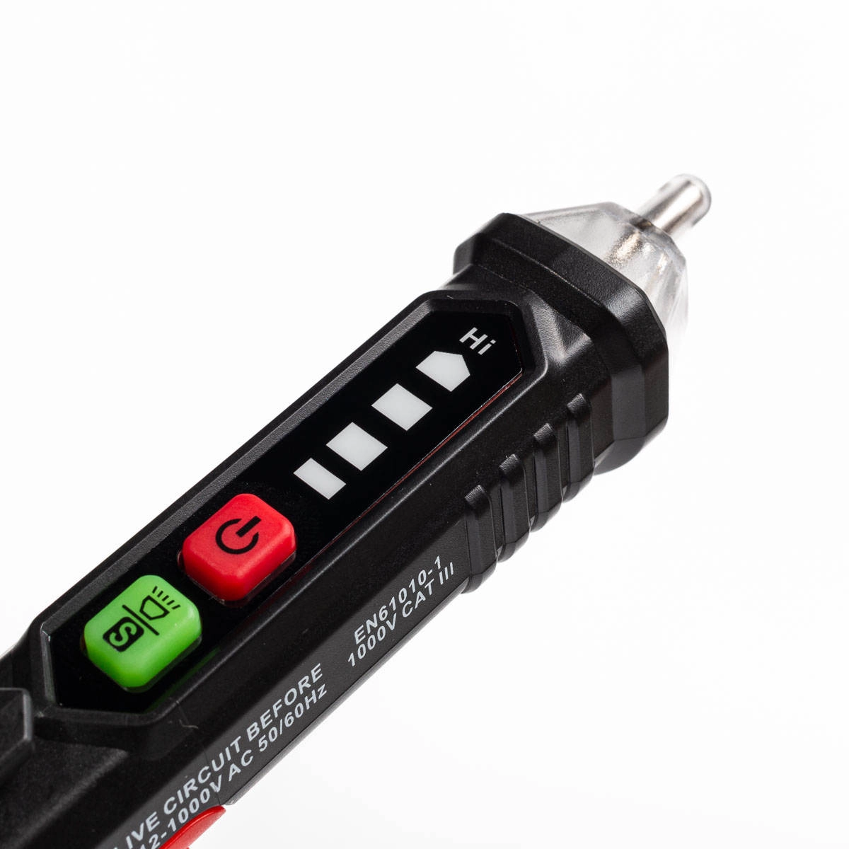 Модель КТ 90 Серия PROLINE Два диапазона чувствительности: высокий: 12–1000 В; низкий: 48–1000 В ЖК-дисплей со шкалой интенсивности Индикация интенсивности сигнала: звуковая (3 уровня) и световая Частотный диапазон: 50/60 Гц Тип щупа: однополюсный Батарейка: 1.5 B AAA, 2 шт. Вес с батарейками: 44 г Габариты: 157х27х23 мм Характеристики