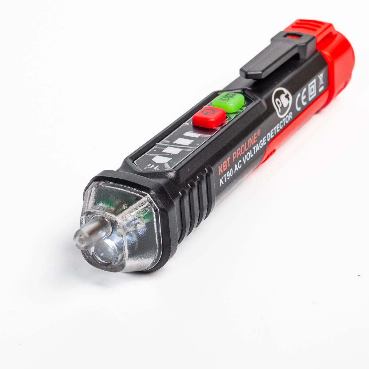 КТ 90 детектор напряжения бесконтактный "PROLINE" арт. 87242 КВТ — детектор переменного напряжения с возможностью определения фазной и нулевой жилы, ЖК-дисплеем, световым и звуковым индикатором, подсветкой.