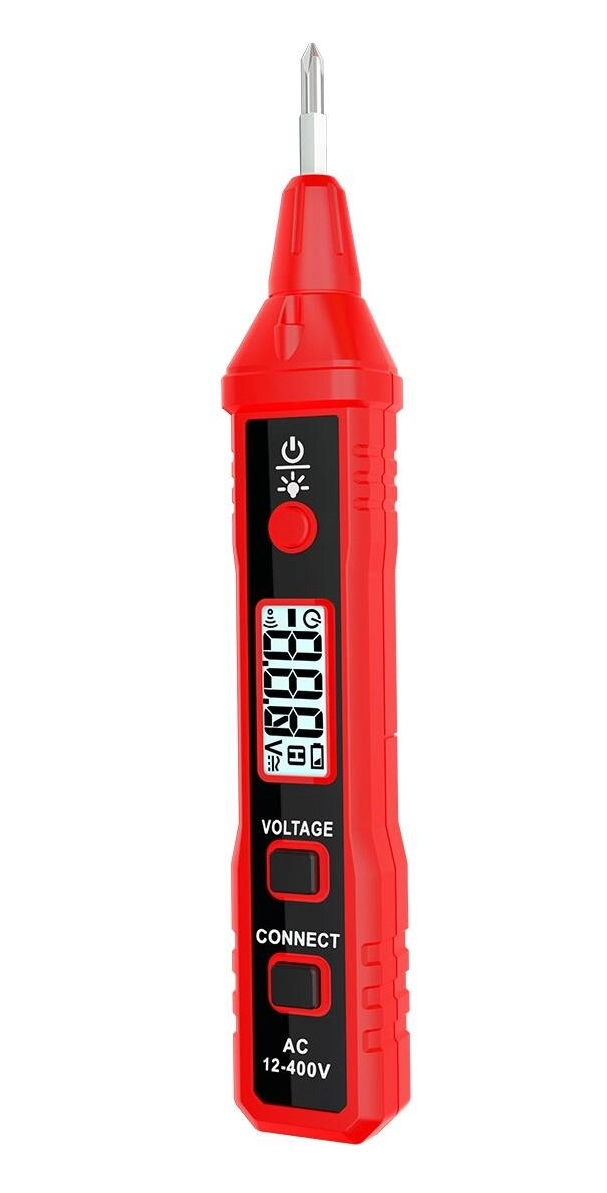 -Детектор переменного напряжения с возможностью определения фазной и нулевой жилы, ЖК-дисплеем, световым и звуковым индикатором, подсветкой