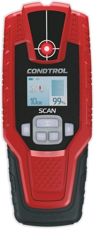 Настенный сканер CONDTROL Scan – это инструмент, предназначенный для обнаружения скрытой электропроводки, деревянных, металлических и пластиковых конструкций в стенах. Информация отображается на удобном монохромном экране. Удобная клавиатура позволяет определить все настройки. С помощью режима ZOOM датчик можно сделать еще более чувствительным. Красный светодиод загорается при обнаружении искомого материала. Звуковой сигнал можно включить опционально.