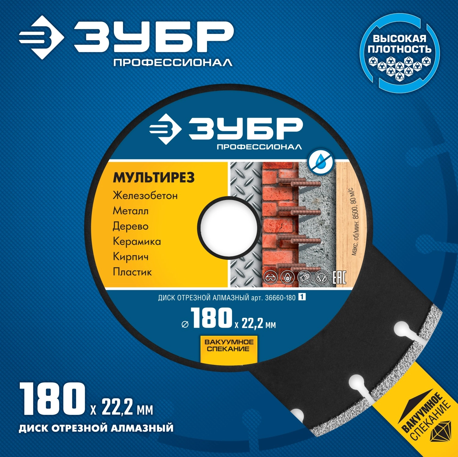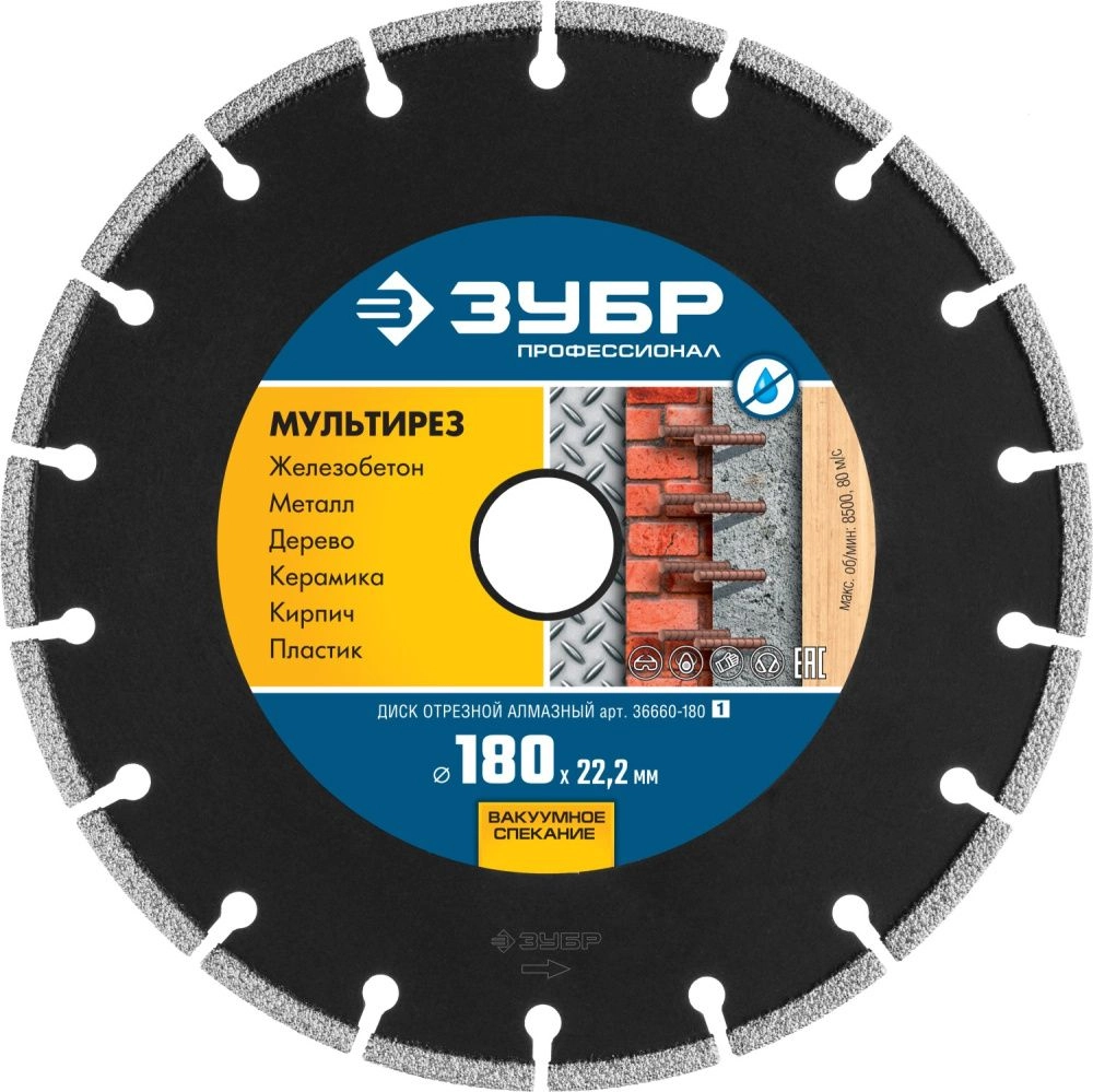 ПроизводителиДиск алмазный МУЛЬТИРЕЗ 180мм 22.2мм, 5х2.6мм (36660-180_z01) ЗУБР