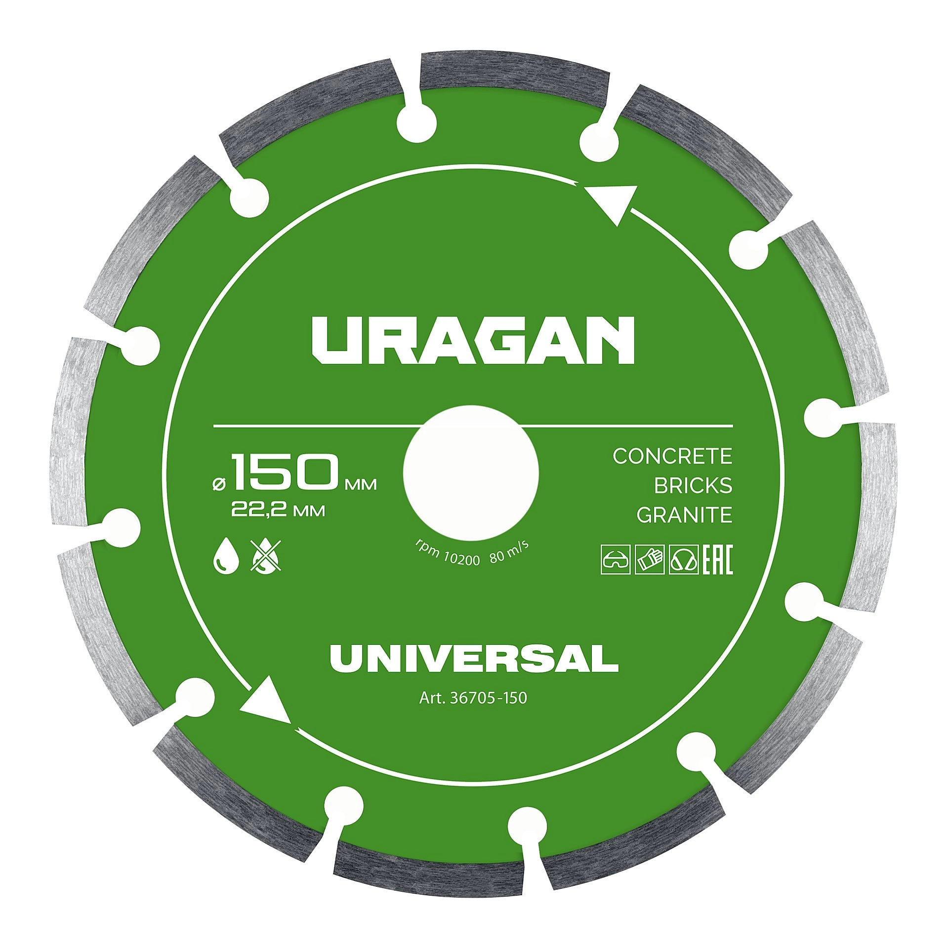 ПроизводителиДиск алмазный сегментированный UNIVERSAL 150 мм (36705-150) URAGAN