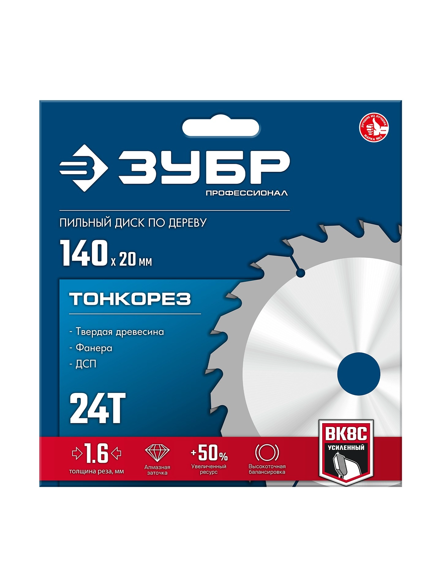 ПроизводителиДиск пильный 140х20x1.6х24Т по дереву "Тонкорез" (36933-140-20-24) ЗУБР