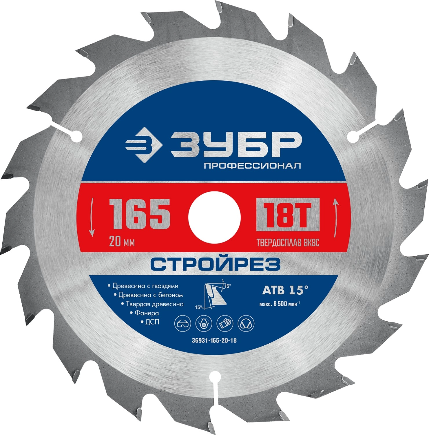 ПроизводителиДиск пильный 165х20х18Т по строительной древесине "Стройрез" (36931-165-20-18) ЗУБР