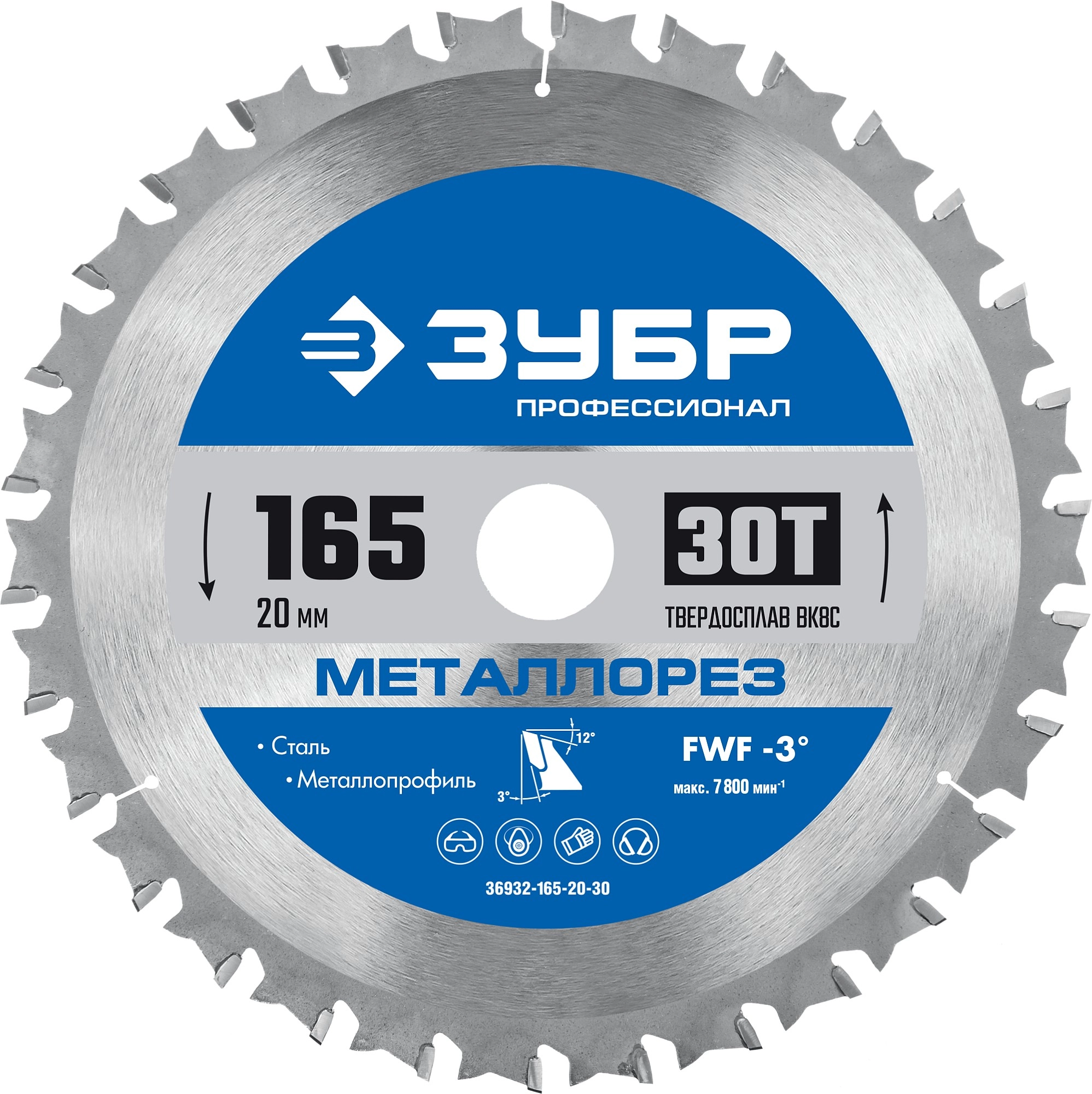 ПроизводителиДиск пильный 165х20х2.2х30Т по металлу и металлопрофилю "Металлорез" (36932-165-20-30) ЗУБР