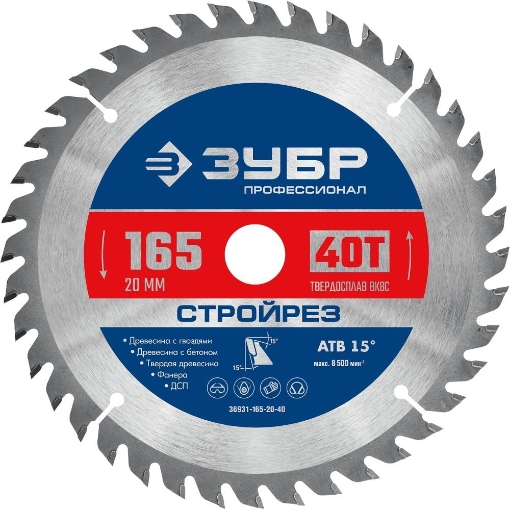 ПроизводителиДиск пильный 165х20х40Т по строительной древесине "Стройрез" (36931-165-20-40) ЗУБР
