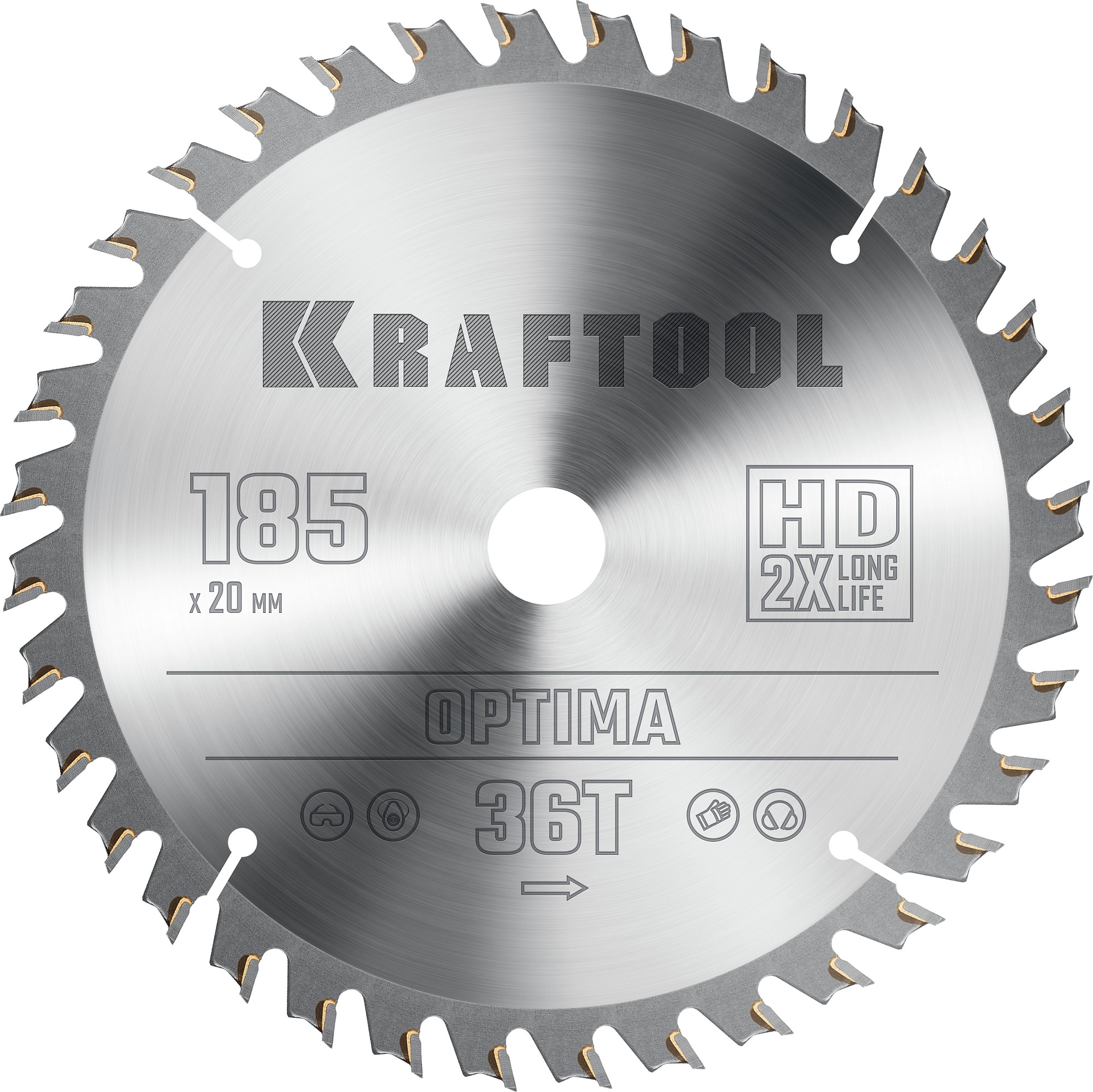 ПроизводителиДиск пильный 185х20х36Т по дереву "Optima" (36951-185-20) KRAFTOOL