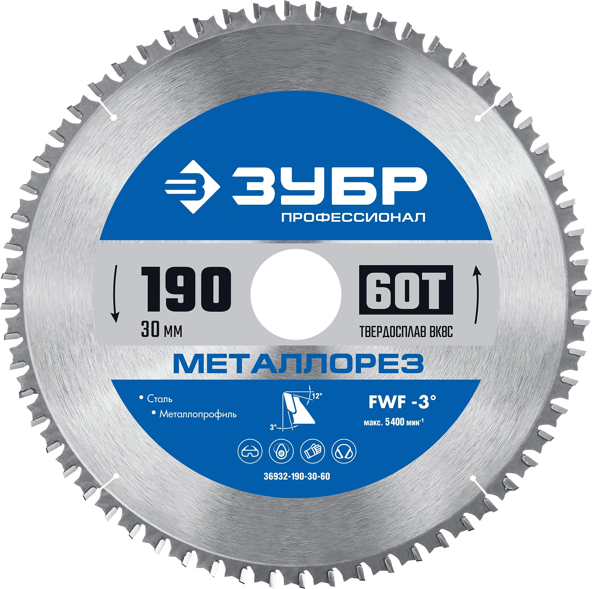 ПроизводителиДиск пильный 190х30х2.2х60Т по металлу и металлопрофилю "Металлорез" (36932-190-30-60) ЗУБР