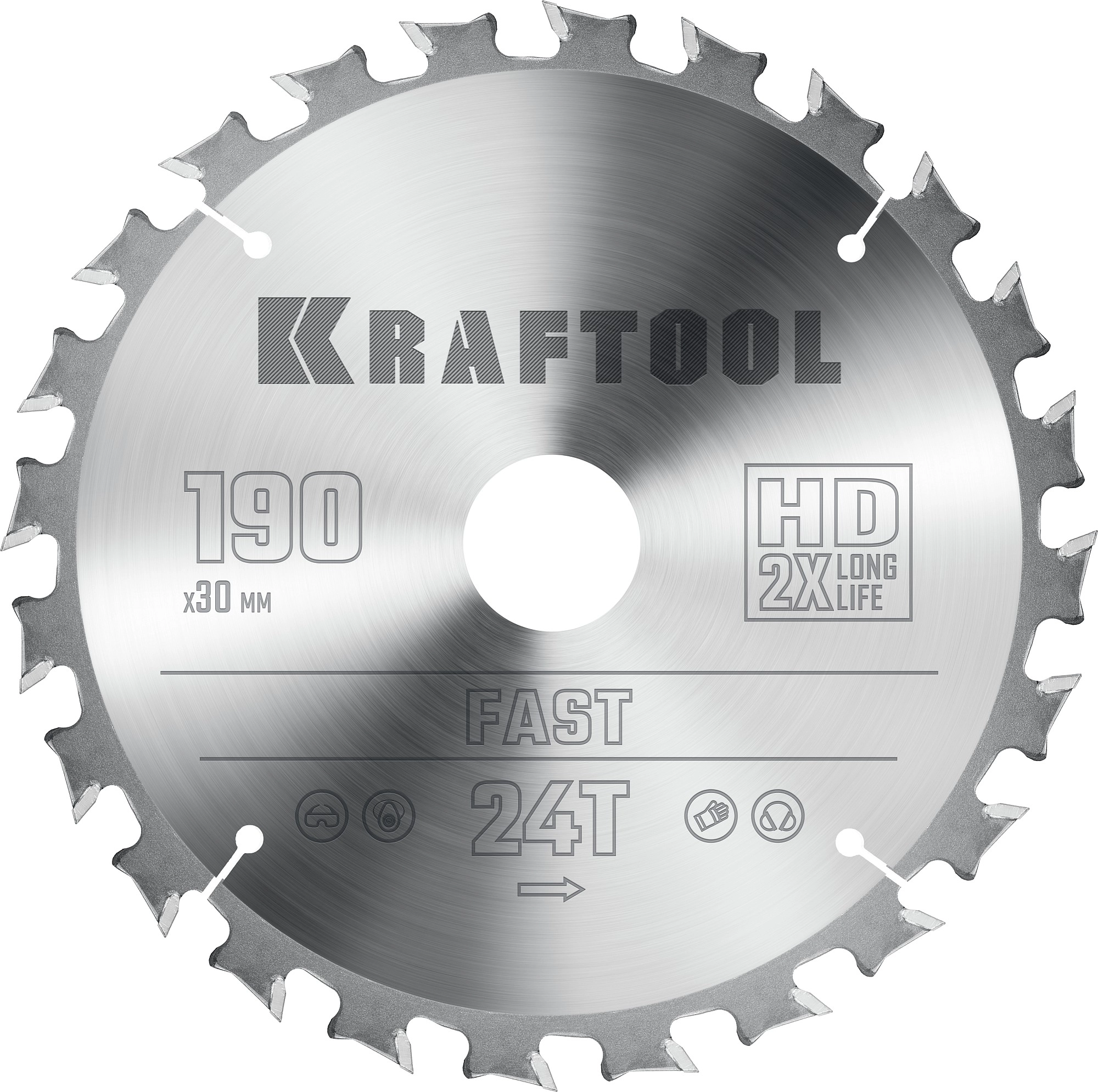 ПроизводителиДиск пильный 190х30х24Т по дереву "Fast" (36950-190-30) KRAFTOOL