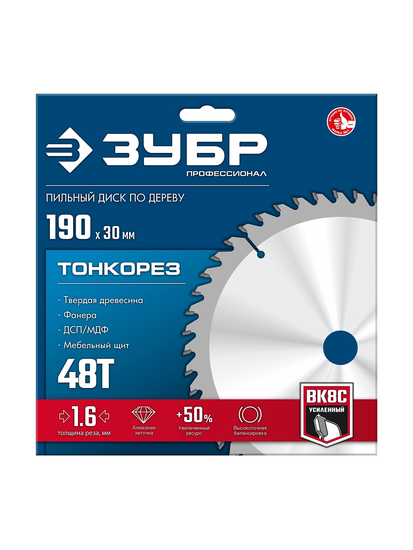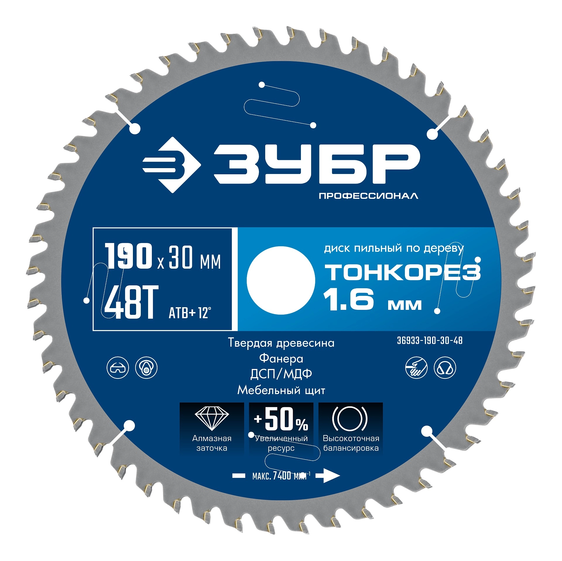 ПроизводителиДиск пильный 190х30x1.6х48Т по дереву "Тонкорез" (36933-190-30-48) ЗУБР