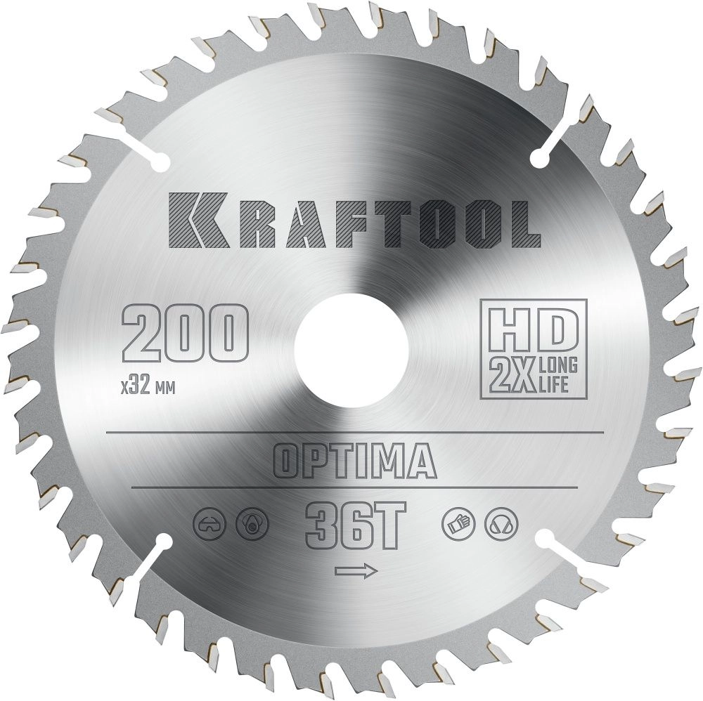 ПроизводителиДиск пильный 200х32х36Т по дереву "Optima" (36951-200-32) KRAFTOOL