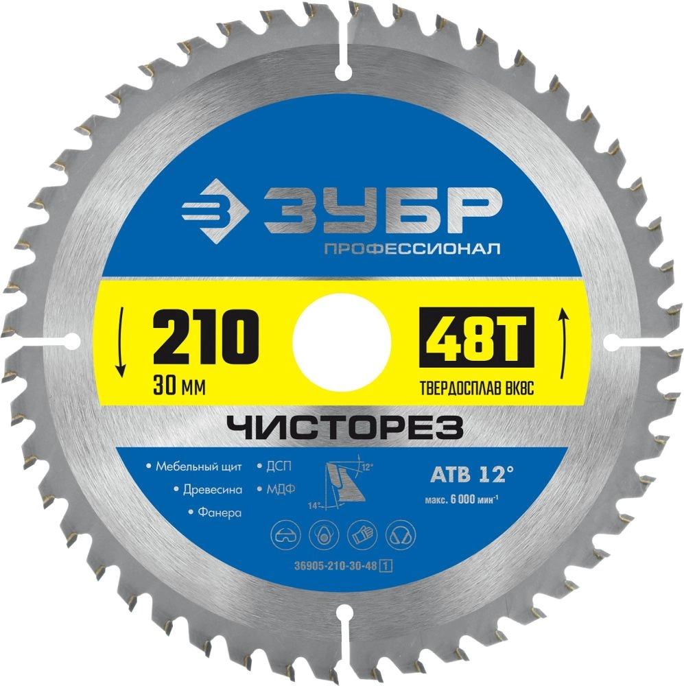 ХарактеристикиАртикул 36905-210-30-48_z01Бренды ЗубрСтрана производства КитайКоличество зубьев 48Диаметр, мм 210Посадочный диаметр 30Толщина круга 1.8Тип геометрии зубьев АТВМатериал зубьев твердый сплав ВК 8Ширина реза, мм 2.6Чисторез - пильный диск для точного и чистого распила всех типов древесины. Применяется для распила твердых и мягких пород дерева, клеевых плит, древесно-стружечных плит и МДФ( в том числе облицованных натуральным шпоном, меланиновой пленкой. бумагой. пластиком и др.)фанеры и облицованной фанерыПроизводитель: Крафтул И/Е Гмбх, Альтер Поствег Штр., Лоенинген, Германия