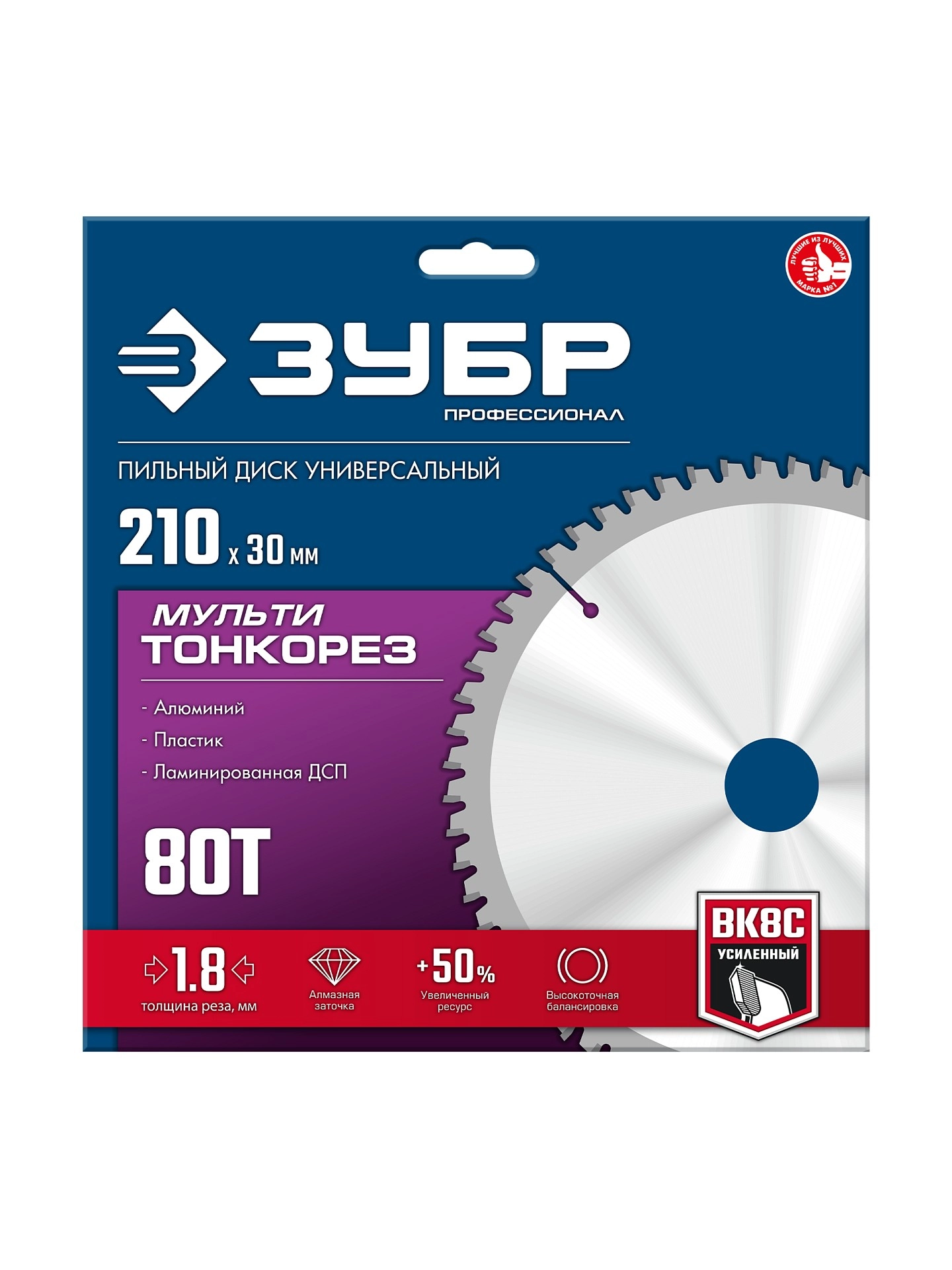 ПроизводителиДиск пильный 210х30x1.8х80Т по алюм., дереву, ламин. ДСП "Мульти Тонкорез" (36934-210-30-80) ЗУБР