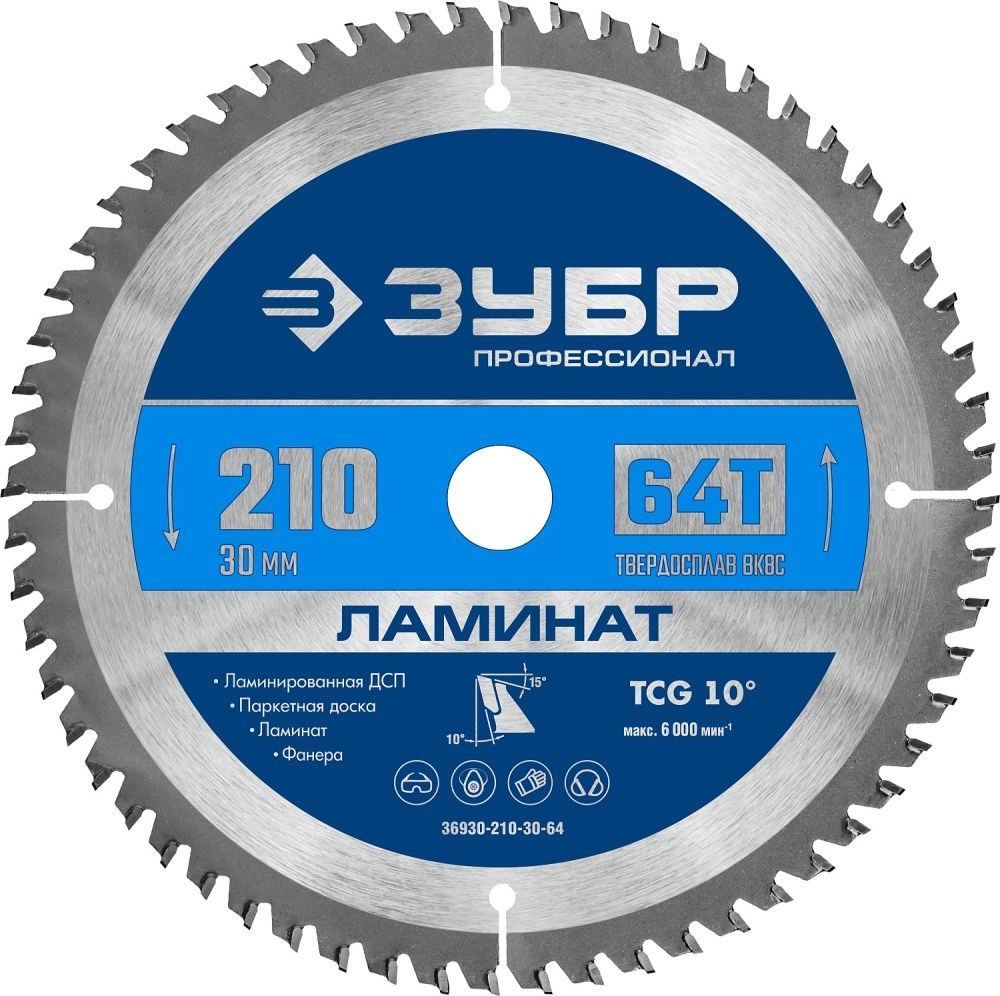 ПроизводителиДиск пильный 210x30х64Т по ламинату, МДФ, фанере (36930-210-30-64) ЗУБР